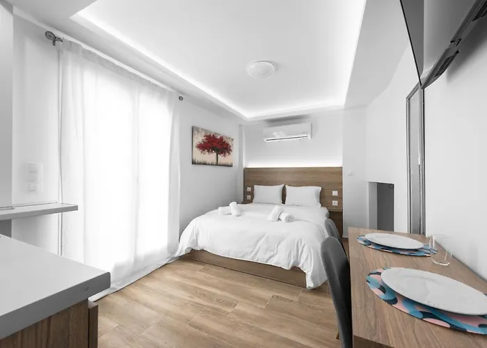 En una cocina con horno de microondas, tetera y nevera, los huéspedes pueden preparar sus comidas. Extremadamente cerca del establecimiento, el restaurante Navarino Creperie sirve comida griega. El aeropuerto Internacional de Salónica-Macedonia está a 19 minutos en coche, y la parada de autobús Lefkos Pyrgos, cerca del establecimiento.